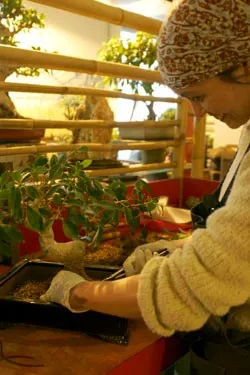Le rempotage est un acte différent pour chaque bonsaï. On prend en compte son âge, sa variété, l’état des racines, le fait d’obtenir une floraison plus abondante etc… Si votre arbre provient d’une jardinerie, le travail de rempotage avant la vente n’a pas été fait. Votre bonsaï est toujours dans sa terre de transport qui est un substrat particulier mais obligatoire lors des importations de végétaux asiatiques. Pour une bien meilleure vitalité, il est bon de lui offrir un mélange terreux plus équilibré et plus riche en éléments nutritifs. Charlane Bonsaï vous propose à domicile avec votre assistance de vous faire un rempotage et de vous expliquer les étapes successives à un rempotage de qualité pour limiter le stress d’une telle opération.